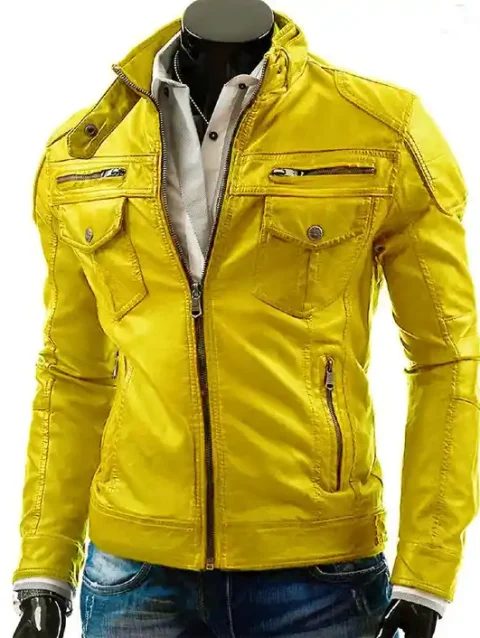 - Yellow leather jacket for men