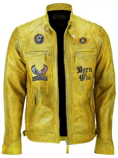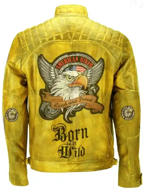 Yellow Vintage American Biker Born Wild Leather Jacket